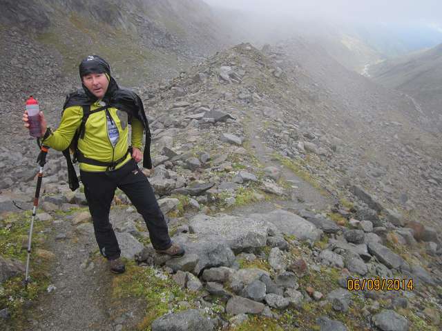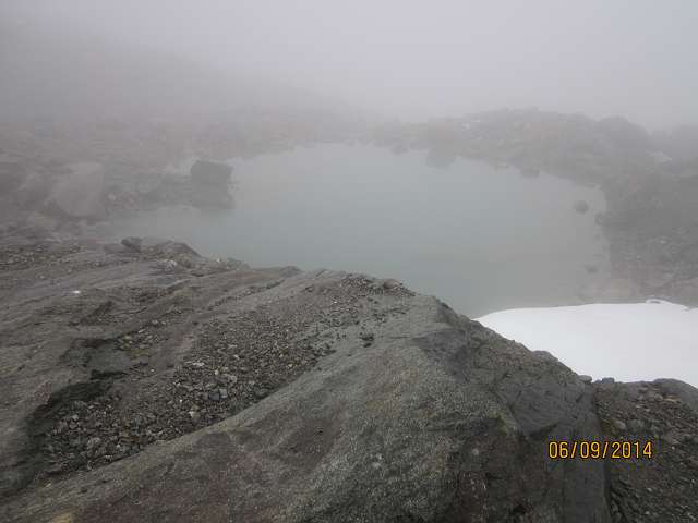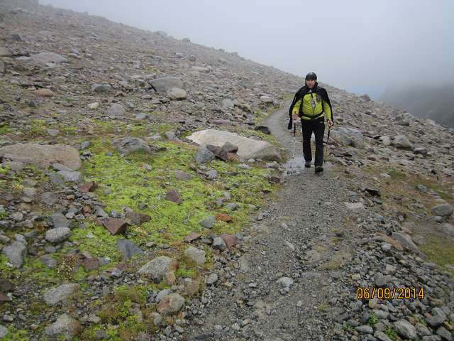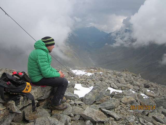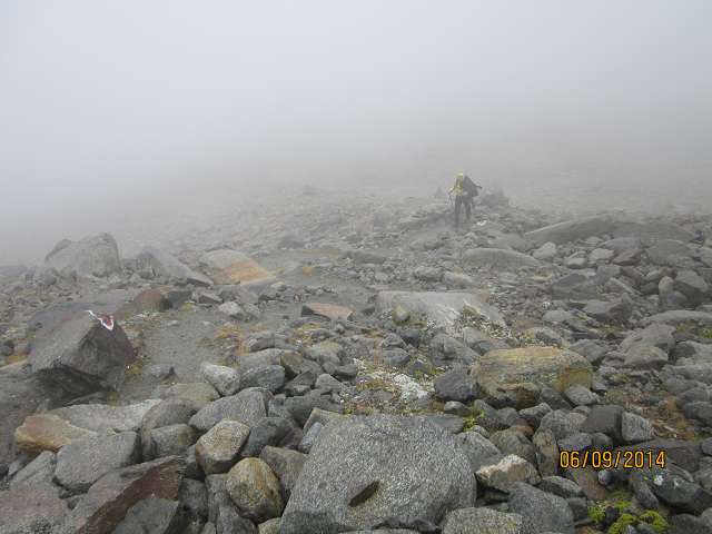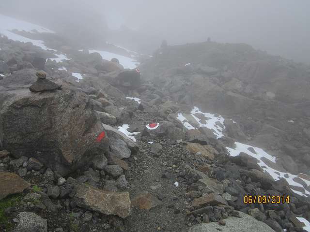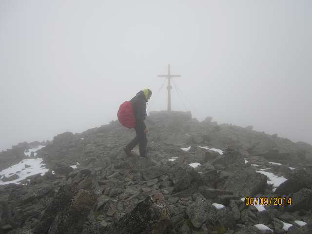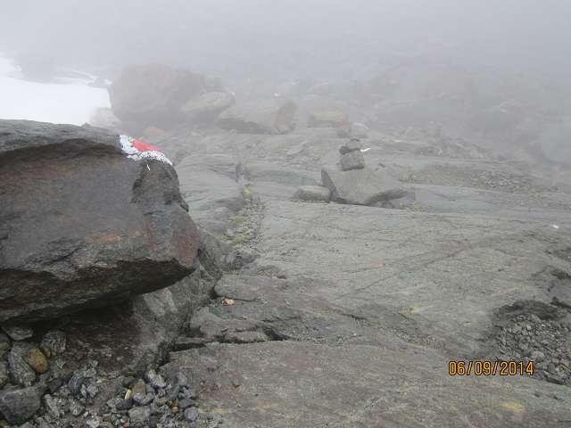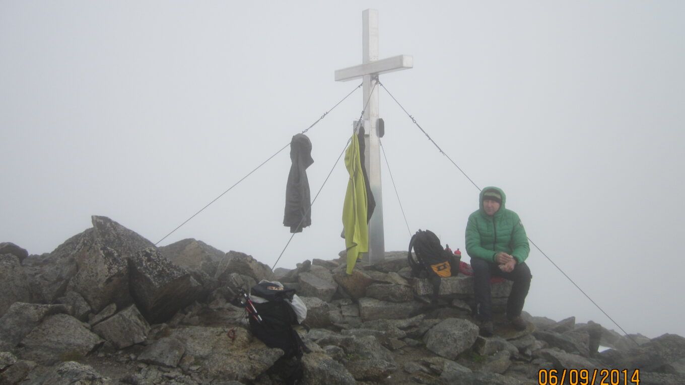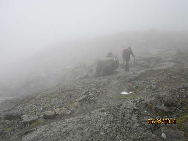Und irgendwann ließ der Niederschlag wieder nach und wir spürten, dass der Gipfel nicht mehr weit war. Im Nebel waren wir uns schließlich nicht ganz sicher, ob wir richtig waren.