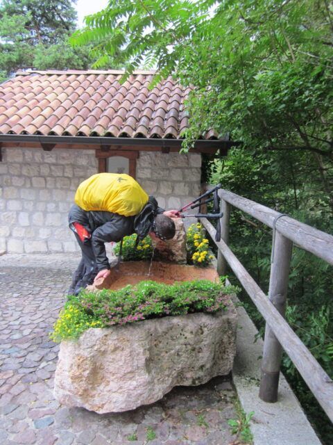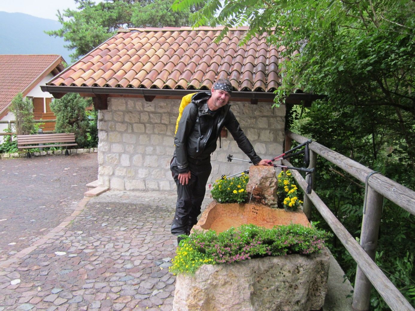 Lang dauerte es nicht mehr, dann passierten wir die “Baita Ciclamio”, die mich an das “Brunntal” erinnerte. Zwischendurch kamen die Franzosen wieder daher, wir waren kurz vorne und dann wieder sie. Eine letzte Labestelle war der Brunnen, als wir – Hungerburgähnlich – wieder bei den ersten Häusern, weit oben in Molveno, eintrafen.