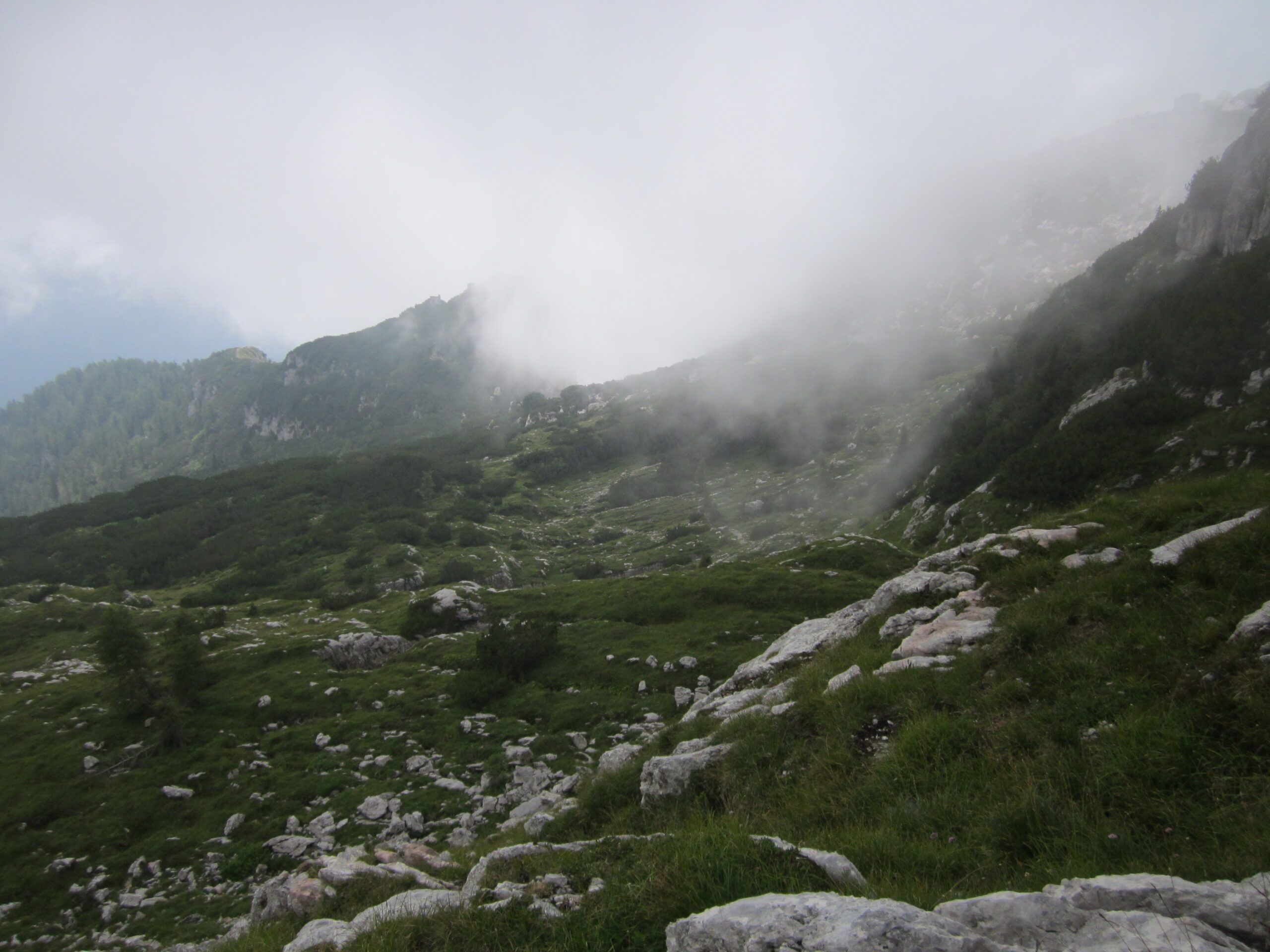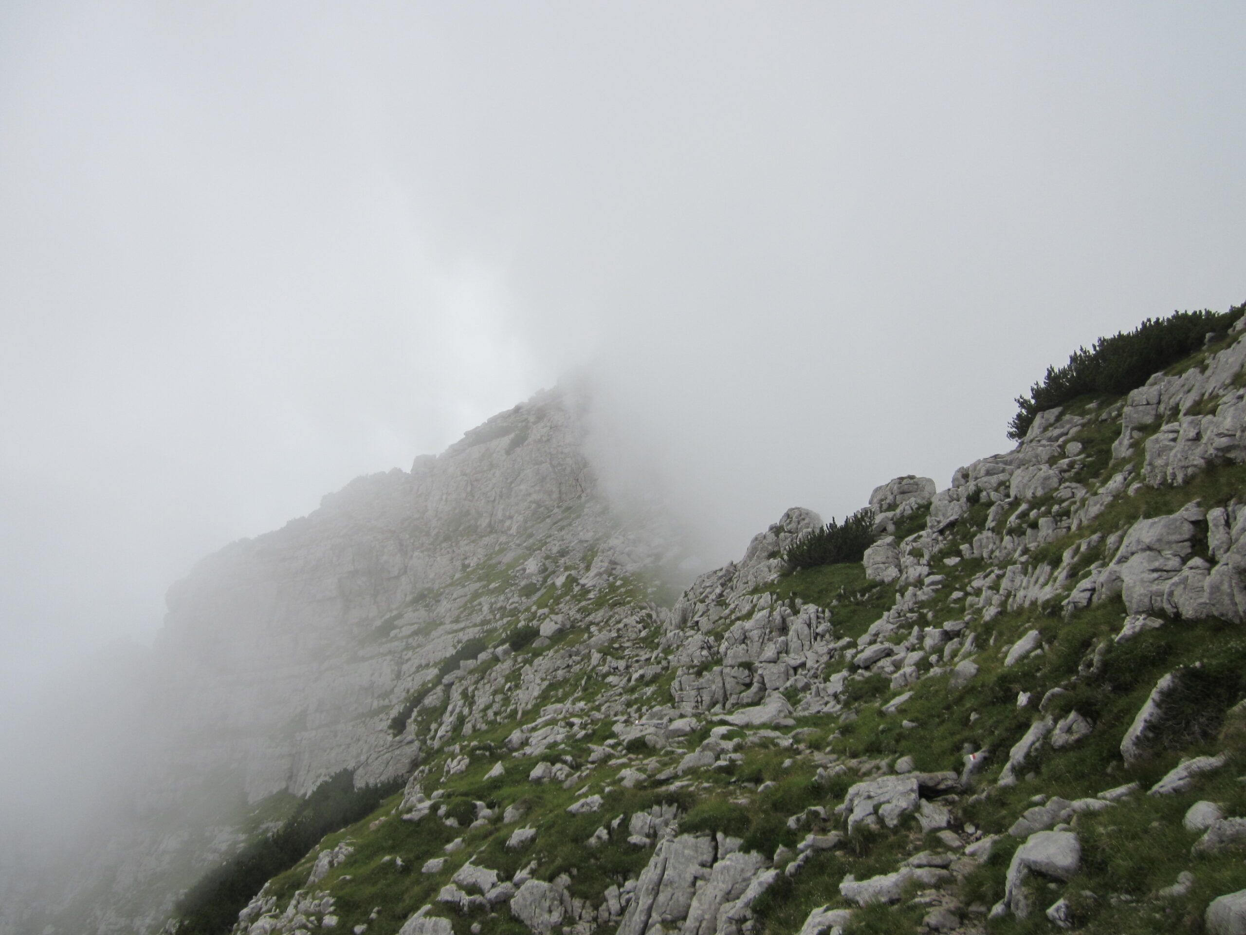 Leider versteckte sich der Giebel meistens in Nebelfetzen, die hin und her zogen. Aber der an der Campinginfo angeschlagene Wetterbericht sah für heute ganztags Regen vor, deshalb bin ich sehr froh darüber, ausgerückt zu sein. Das Nass setzte schließlich erst nach meiner Rückkehr, gegen 15:30 Uhr, ein.