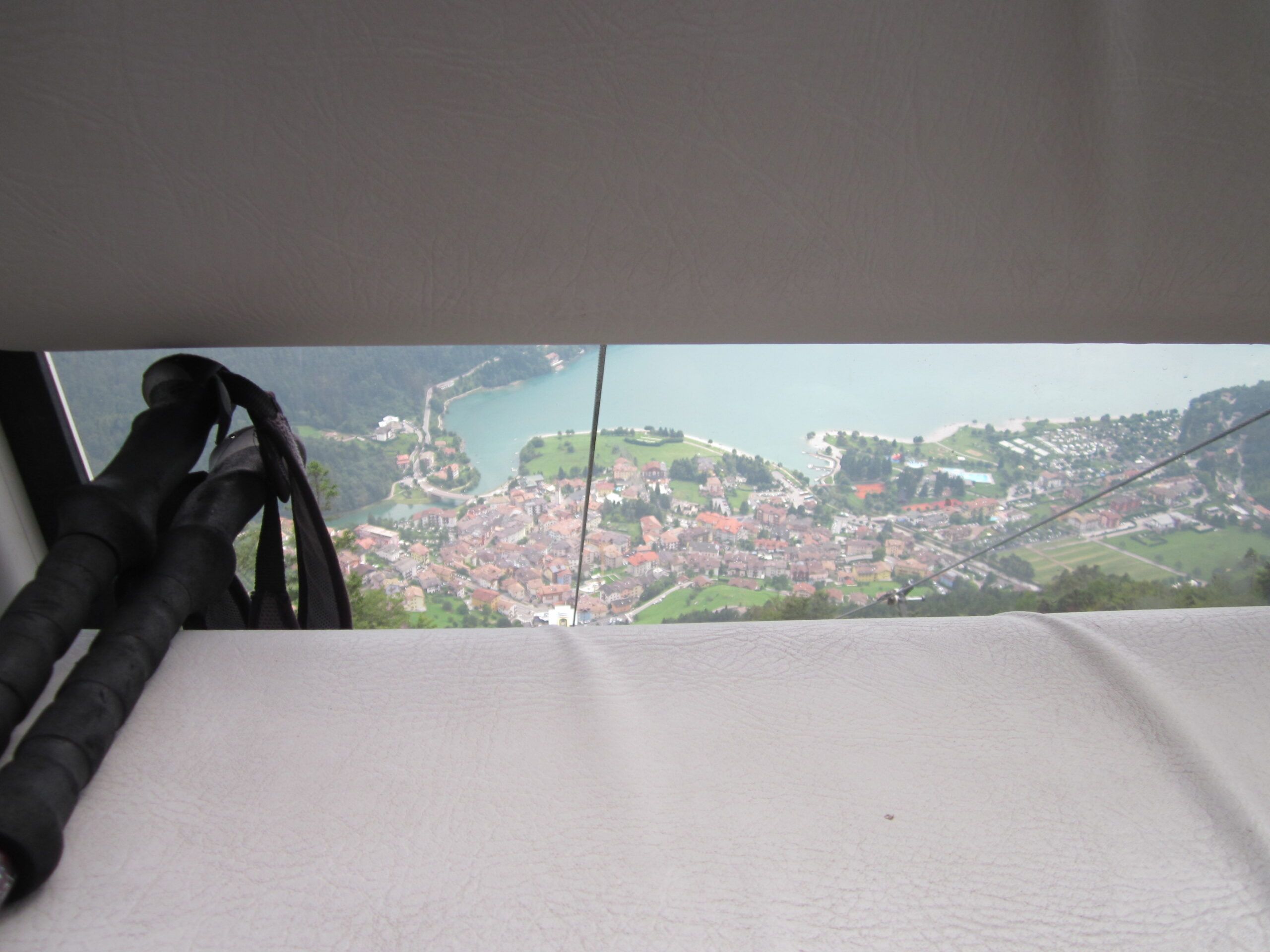 die 3 Bäume symbolisieren die 3 bestiegenen Gipfel (Piz Galin, Cima dei Lasteri, Croz delle Altissimo); rechts ein letzter Blick bei der Talfahrt ins Örtchen Molveno