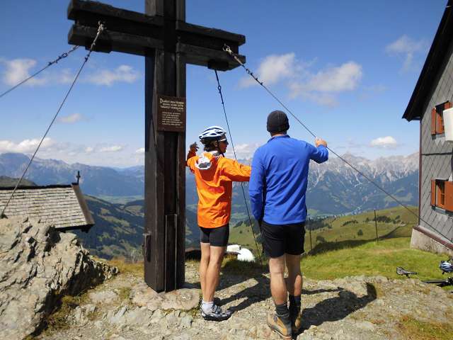 Am Ziel angekommen ließen wir uns einen Käsknödel mit Salat schmecken und dazu lecker Bier. Ein Tischnachbar aus der Gegend erklärte mir die umliegenden Berge und schon schürte er die Lust auf ein nächstes Ziel (was meint ihr, welcher von allen es am ehesten sein sollte?).