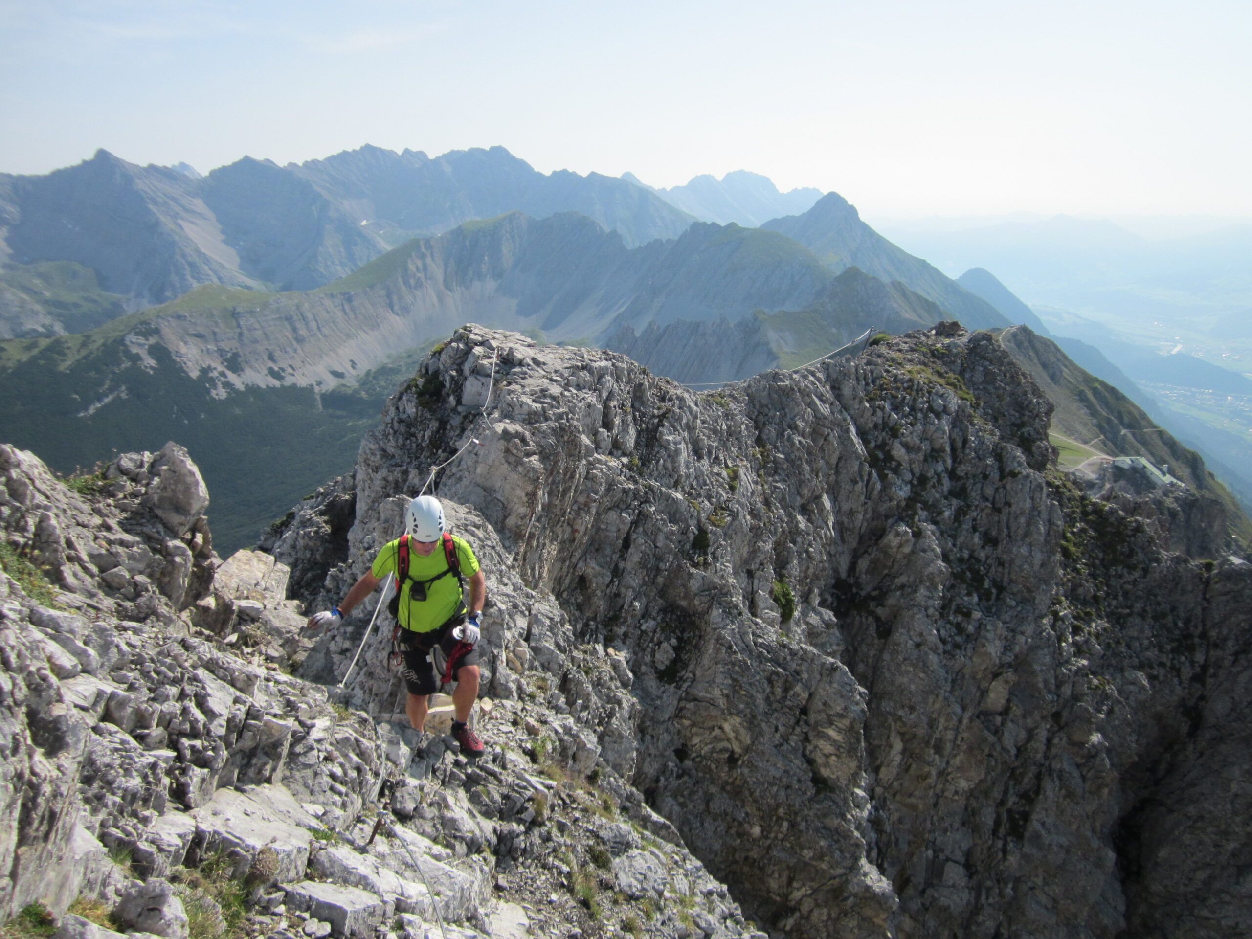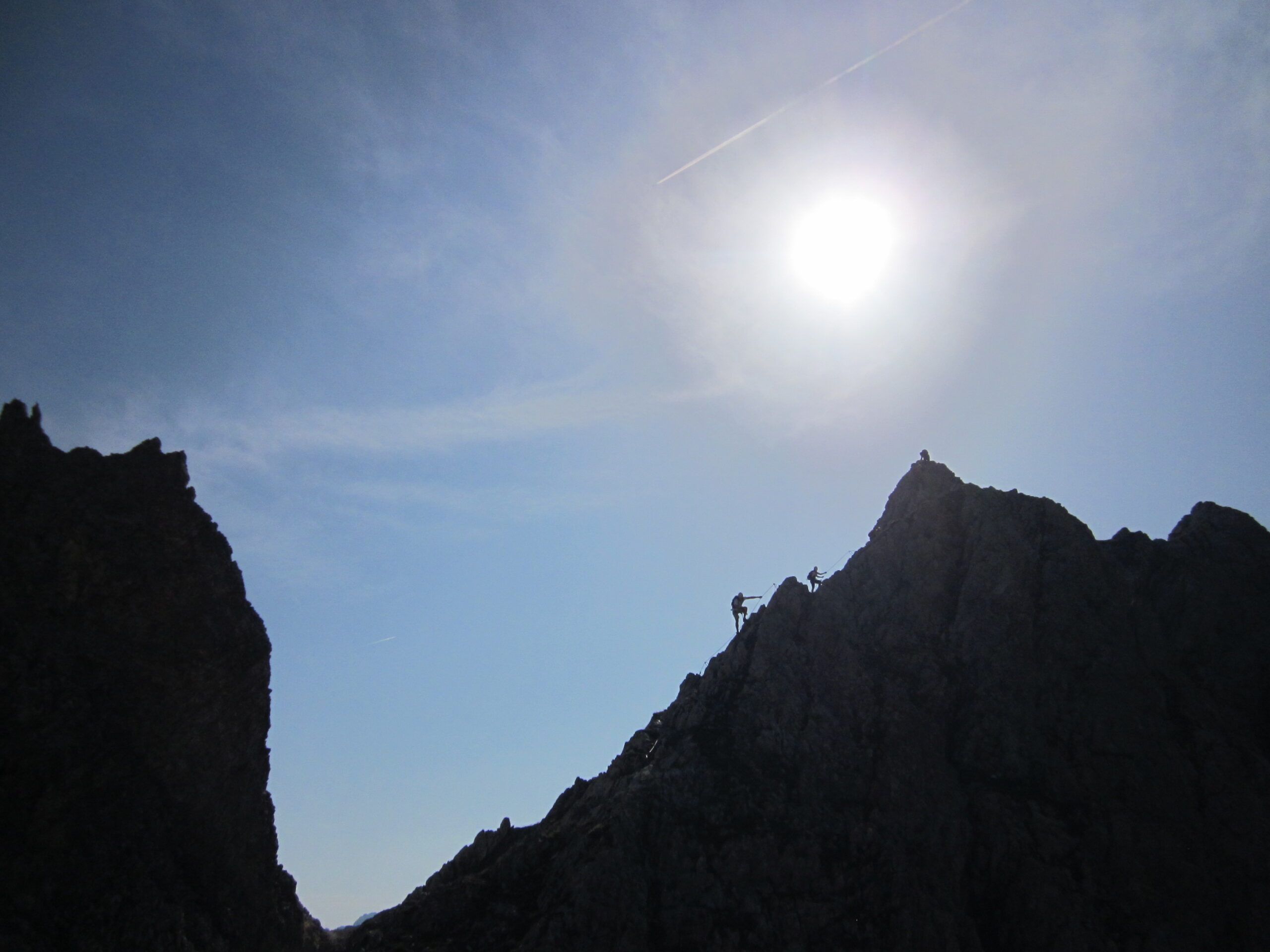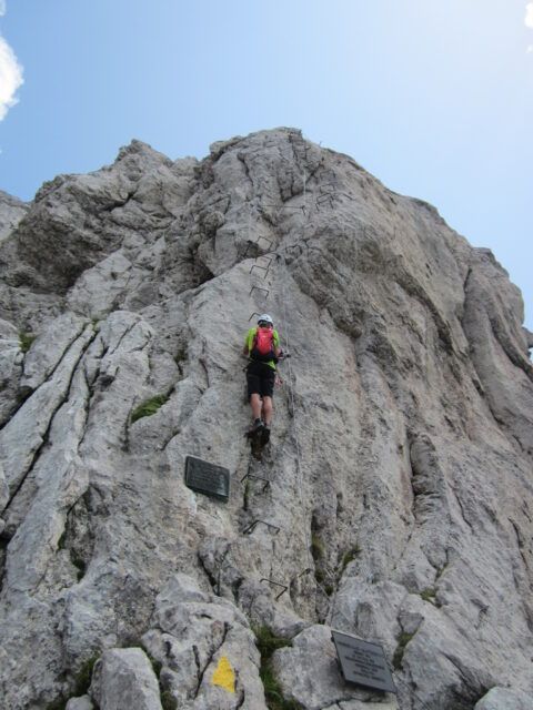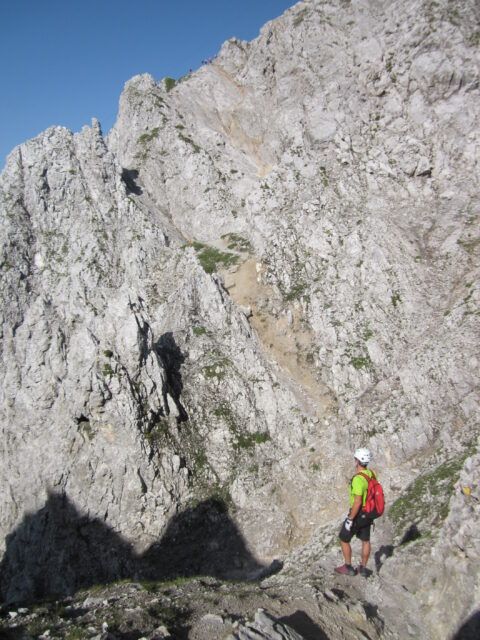 Klettertechnisch erwarteten uns keine Schwierigkeiten. Die Anlage “zieht sich aber in die Länge”. Auch wenn der nächste Gipfel schon zum greifen Nahe scheint, war durch das viele auf- und ab doch einige an Zeit zu berücksichtigen.