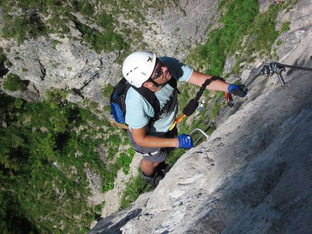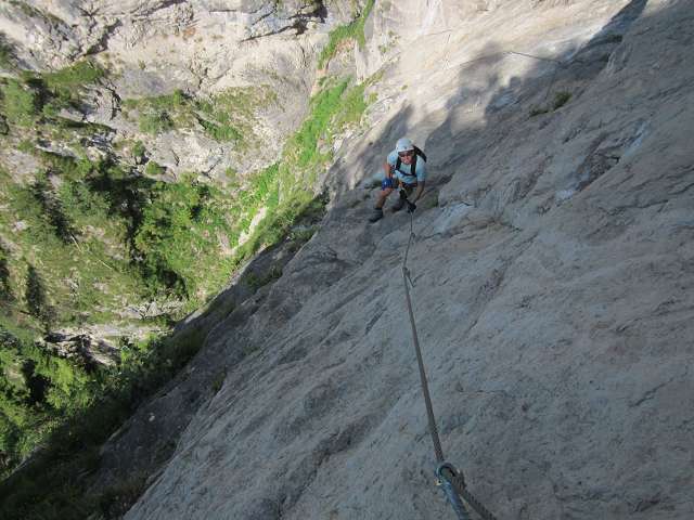 endlich mal wieder Klettersteig. Und wenn mich vor wenigen Jahren einer gefragt hätte, wer mein heutiger Partner ist, hätte ich schallend gelacht. Doch gäbe es auch einige andere Dinge, die keiner für möglich hielt. So trifft sich nun halt seit einigen Monaten die “kleine Bartlmä-Runde” – bestehend aus Leuten aus der Wirtschaft und des Transportwesens. Einzig “Bartlmä” hat keine Bedeutung mehr, Treffpunkt ist nun das Harleys 😉 .