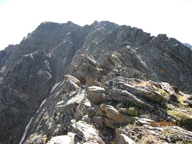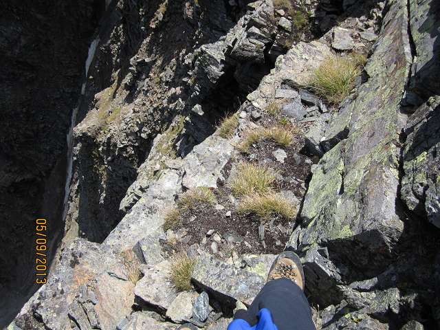 Schließlich erreiche ich einen Punkt, wo es – optische Täuschung hin oder her, 100%ig nur mehr nach unten geht. Ich schaute auf den Höhenmesser und der zeigte etwa 2.760 Meter. Zurück! Das wird nicht höher, und schon gar nicht 2.947 Meter. Irgendwie war es mir egal, aber die Karte habe ich mehrfach gezückt und es mir nicht erklären können, dass ich den Gipfel nicht “gefunden” habe, müsste er mir doch mit seinen knapp 150 Metern mehr als die Raiche schon aufgefallen sein. Zuhause werde ich das Rätsel schon lösen, sagte ich mir nicht nur einmal. Ich kraxlte den ganzen Grat zurück und genoß die spannende Fortbewegung.