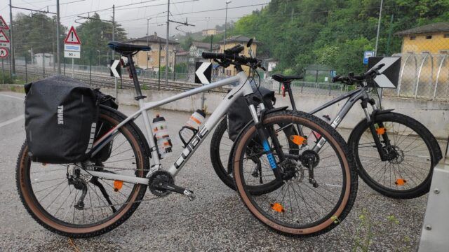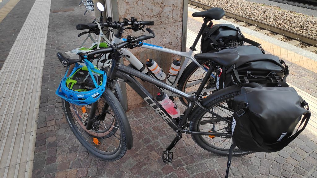 Rückreise von Roveretto per Zug: Das Reisen mit der Bahn und dem Fahrrad ist nach wie vor eine Expedition für sich und NICHT zu empfehlen. Trotz bezahltem Ticket für Mensch und Material – kein verbindlicher Transport; Ein möglicher Mittransport ist von der Willkür der ZugbegleiterIn abhängig. In unserem Fall waren 7 von möglichen 8 Fahrrädern bereits im Zug. Am Bahnsteig standen wir in Summe zu 5 also um 4 zu viel. Nach intensiven Kniefällen aller Protagonisten hat sich die ZugbegleiterIn erweichen lassen uns mitzunehmen. Die Fahrräder wurden im Fahrradabteil sowie in einer Gepäcknische zerlegt verstaut und gesichert. Ein solches Theaterdrama kostet Nerven.