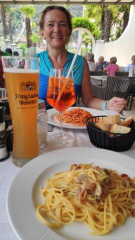 Unsere Drahtesel verdienen sich eine Pause, aber wir ganz bestimmt auch. Feine Nudelgerichte für den Magen, feine Getränke für Körper und Geist.