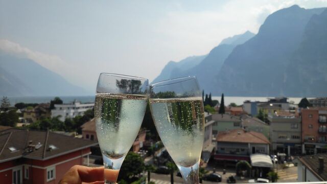 Angestoßen wird auch noch im Hotel über den Dächern von Riva.