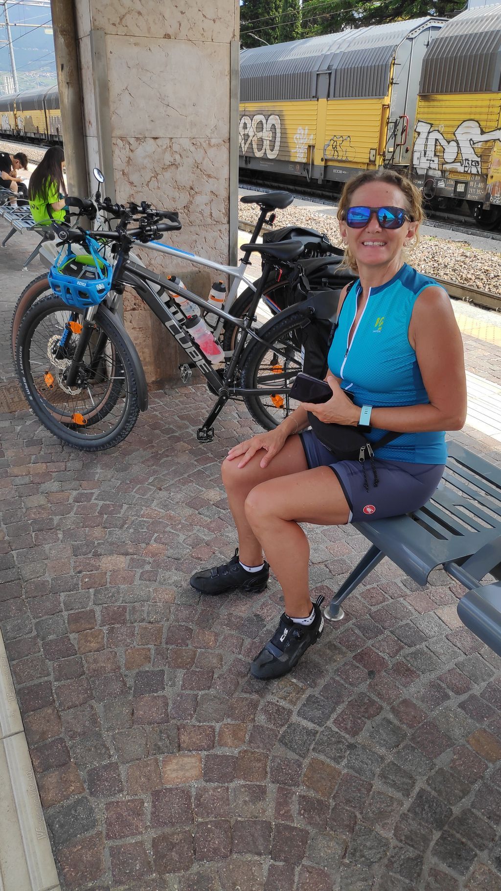 Am Brenner der übliche „Umsteig-Salat“, am Automaten ein Ticket gelöst, im Zug die Räder verstaut. Auch bei der ÖBB zum Thema Radtransport: im gesamten Zug stehen genau 3 Nischen dafür zur Verfügung. Je Nische finden 1,5 Räder Platz. Der Rest steht in den Gang und behindert sämtliche andere Zuggäste! Liebe Bahn: Nach knapp 20 Jahren habt ihr nichts dazu gelernt. Radfahren mit der Bahn – ein Ding mit hohem Stresspotential und schlichtweg ungenießbar!