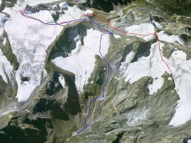 Ganz früh trafen wir uns heute, um nur ja nichts zu versäumen. Die erste Bahn fuhr um 07:30 Uhr zum Gamsgarten. Dort stiegen wir flott um in den Rotadellift. Somit lag unser Startpunkt bei exakt 3.013 Metern. Wir entschlossen uns spontan, ein kleines Stück abzufahren, möglichst weit rechts querend, um wenige, vielleicht 150, Höhenmeter zum Schaufeljoch aufzusteigen.